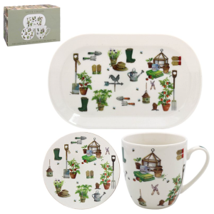 Green Fingers China Mug & Coaster With Melamine Tray Set