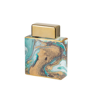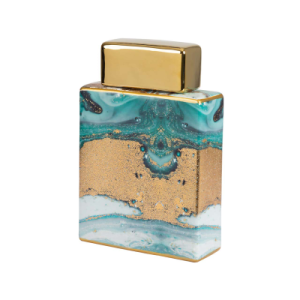 21.5cm AQUA & GOLD ABSTRACT GINGER JAR